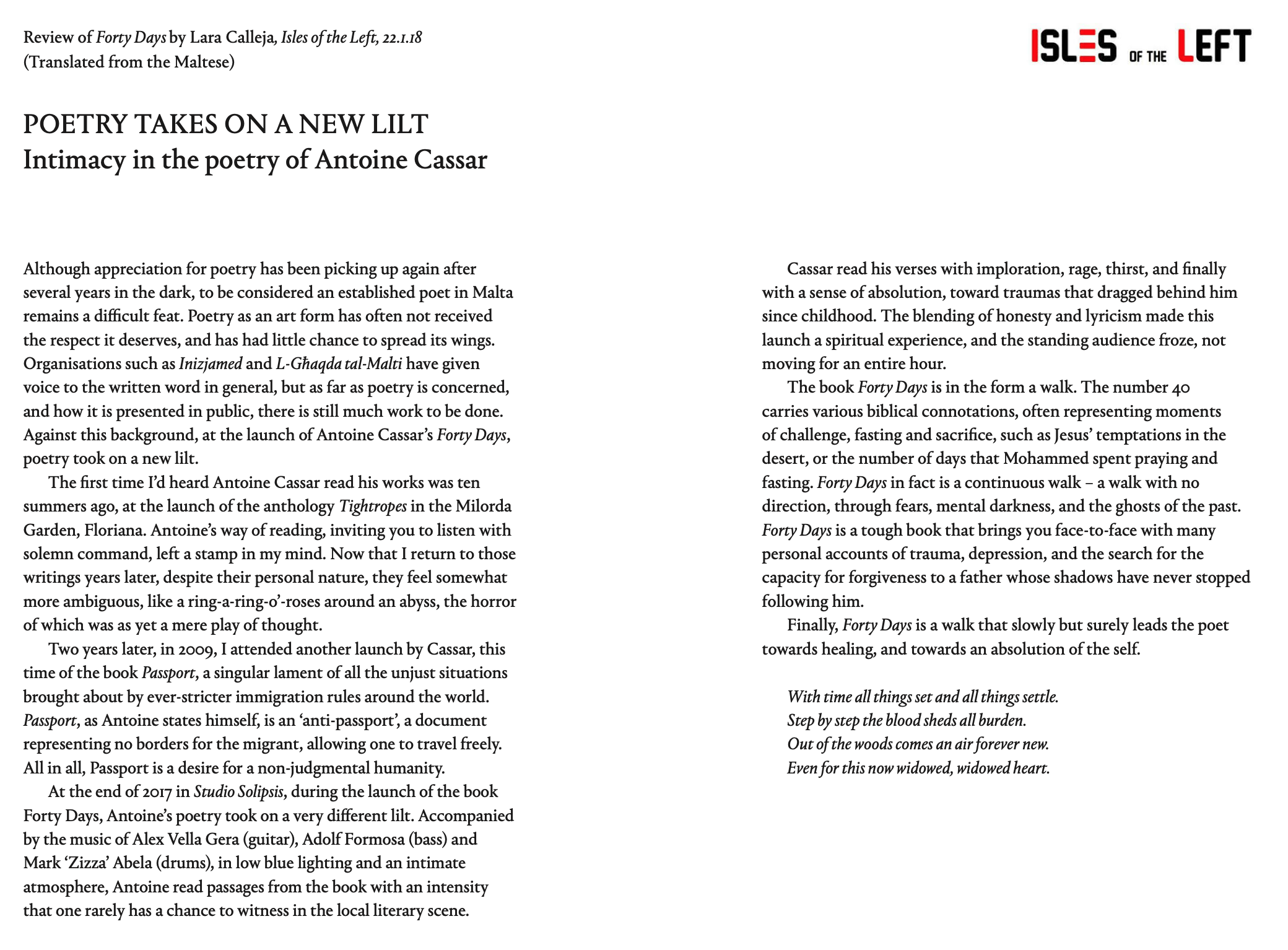 — Poetry takes on a new lilt – Lara Calleja in Isles of the Left