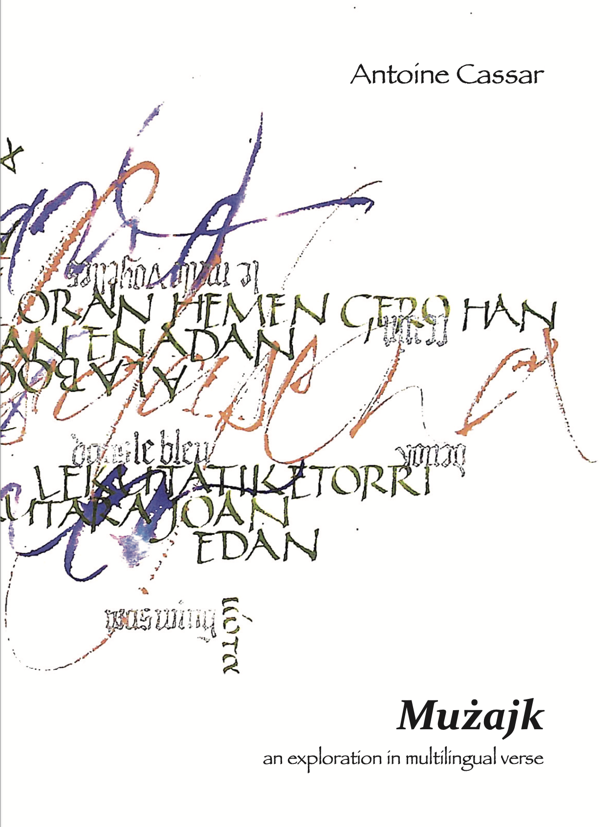 Mużajk was published by Edizzjoni Skarta, on the occasion of two poetry readings in Sannicandro di Bari (as part of an artistic project directed by Italo-Lebanese duo Radiodervish) and in Lecce, Italy. The cover illustration, Gonbidapena, is by international calligrapher Massimo Polello.