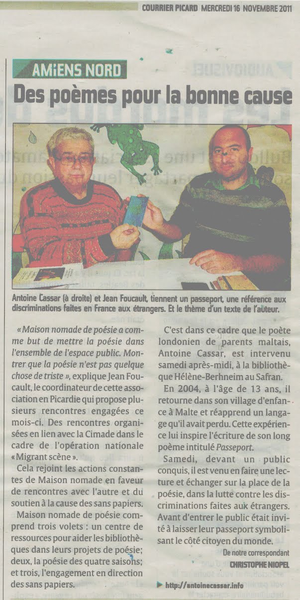 Passport is an anti-passport, valid for all peoples and for all landscapes. A declaration of universal citizenship, the vision of a world where the fear of barriers and frontiers has long been overcome. A world without customs and checkpoints, without border police out to snatch away the dawn, without the need for forms, documents, or biometric data… A world without the need to cross the desert barefoot, nor to float off on a raft, on an itinerary of hope all too quickly struck out by the realities of blackmail and exploitation. The modulating verses of the poem, the alliteration and anaphora, give force to a voice looking to quicken the planetary conscience of the listener.