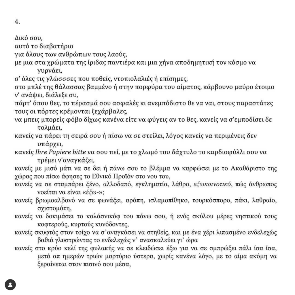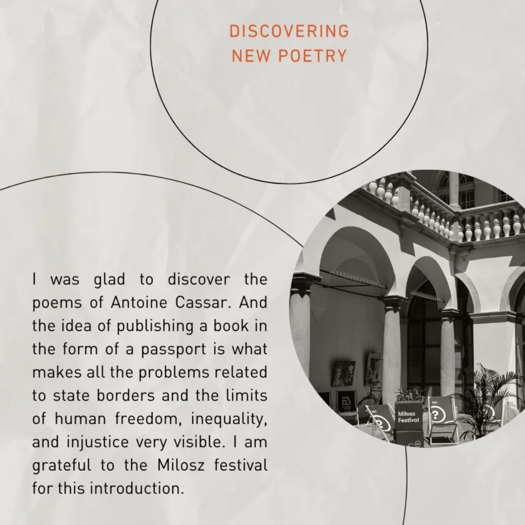 “We met around 4 years ago in Auroville, very briefly. You gave me a passport. I’m still carrying it with me. From Asia to Africa to Europe. Every time I want to travel to meet friends, see my daughters who live in Europe, or simply explore a part of this planet, I have to get visas, financial support letters and bank statements… I wish I could simply show them your passport and they would let me in… I wish I could travel the world without barriers, to be welcomed and loved. Too many questions, too many stamps and documents. It’s humiliating. Your poetry is a refuge for me, facing such folly… I wonder how this species became so stupid… Do sub-atomic particles need passports? Or shrimps ID cards?“