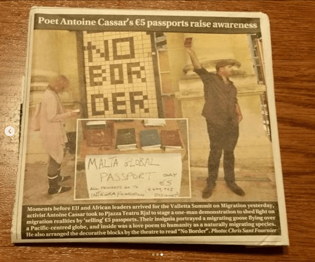 Printed in the form of an anti-passport, the booklet has been published in over a dozen languages; adapted for the stage by theatre groups in Malta, France, Belgium, Luxembourg and Canada; and set to music in France, Italy and Australia. Proceeds are passed on to grassroots associations that provide direct assistance to refugees in the community.